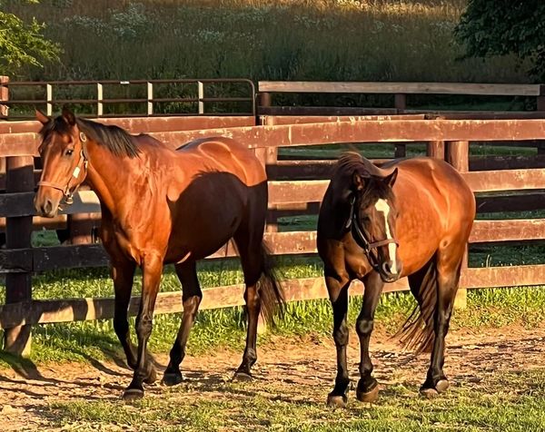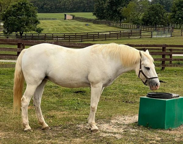 Annie is an absolute hoot. Born in 1995 to breeders Michael and Susan Arney at Claddagh Farm in Avon, NY, she was sired by their stallion Greystone An Lauren, one of the four stallion sons of *Rosenharley Laurens. Her dam, Cobweb Allison, was conceived in a midnight through-the-fence breeding between Aladdins Denver and Greystone Irish Moss, who herself had jumped a competition round the night before foaling out Allison, who was a complete surprise to her owners. Allison went on to become a lovely broodmare as well, producing Annie later in life. Annie has had two foals, O'Days Cottage Rose and O'Day's Emily, who looked so much like her that they were hard to distinguish standing at the fence line! A good broodmare offers predictable get to her breeder, and Annie was superb in that respect, and in her mothering as well. She has always been particularly fond of children! She is also fond of being bred, though those days are past, and she will try to persuade you that you need to bring a stallion NOW when she is in season! Annie might be a farm favorite, and embodies how the rescue can take an aging horse who is losing weight and body mass and restore them to vigor and even, dare we say, a fat pad or two? She is an alpha mare, an admirable Irish woman indeed..